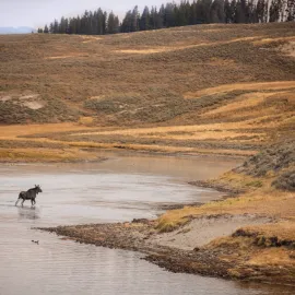 Coyotes and foxes are part of the dog family. They inhabit similar terrain – basically all meadows and some of Yellowstone’s forests – but foxes are more elusive and smaller. Coyotes are the most frequently seen of Yellowstone’s canines, and may be found alone, in pairs or in small groups. Look for coyotes and foxes in Lamar Valley, Hayden Valley, Slough Creek, Little America, Blacktail Plateau, Fountain Flat or along the shores of Yellowstone Lake. If you find one, plan to watch for a while as they are always up to something. They are easier to see in winter due to contrast with the snow.